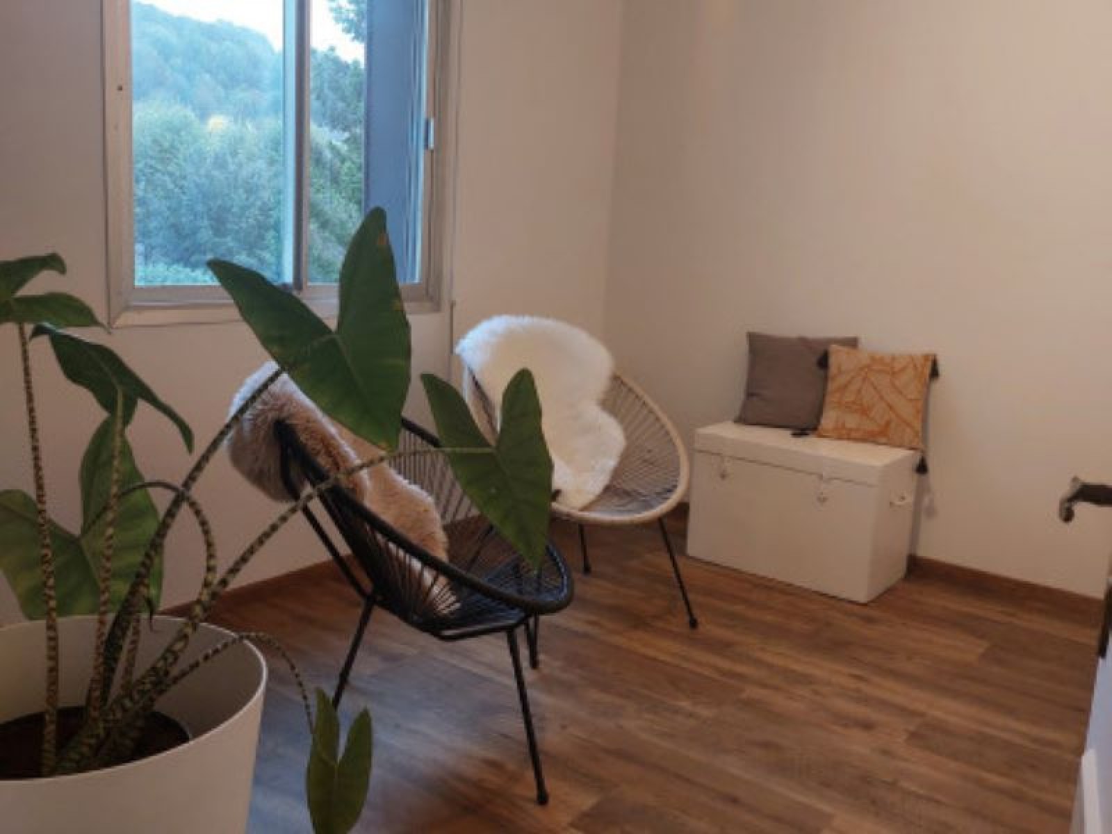 Un appartement de 102 m2 environ composé d'une entrée , débarras, grand salon- séjour avec cuisine équipée et aménagée ouverte de plus de 55 m2, une buanderie, une grande salle de bain et douche avec WC Deux belles chambres avec dressing