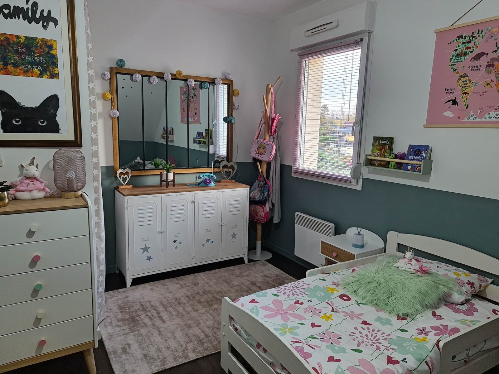 A l'étage 3 chambres, Salle de douche, Pièce palière avec rangement, wc.