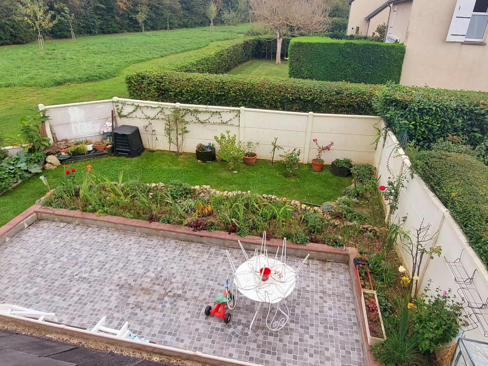 La maison dispose d'une grande terrasse de 35m², expo Sud.