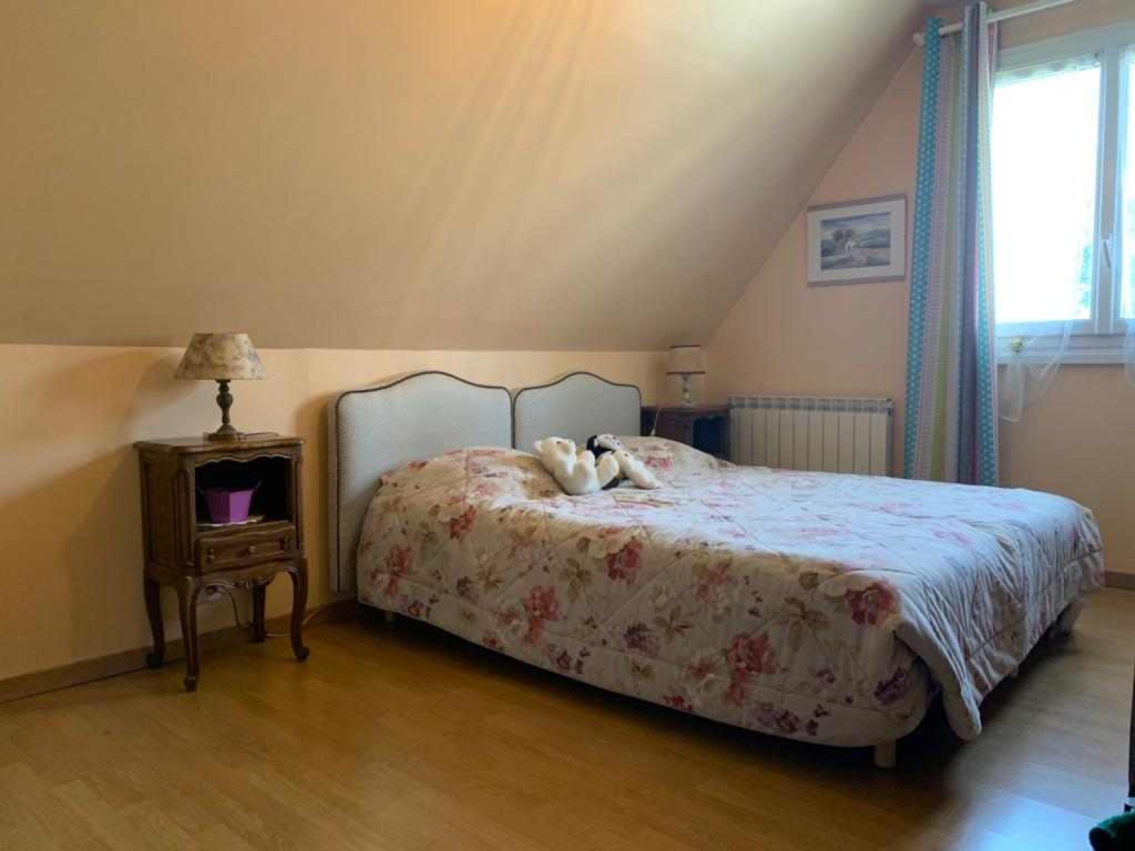 A l'étage, un palier desservant 3 chambres et une salle de douche avec wc. Le tout équipé de radiateurs à inertie sèche.